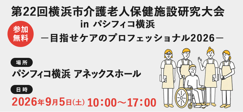 「目指せケアの プロフェッショナル2026」 場所: パシフィコ横浜 アネックスホール 日時: 2026年9月5日(土)10:00~17:00